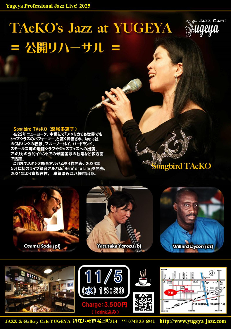 深尾TAeKOオープンリハ Taeko(Vo,Koto) 祖田 修(pf) 萬康隆(b) Willard Dyson (ds)